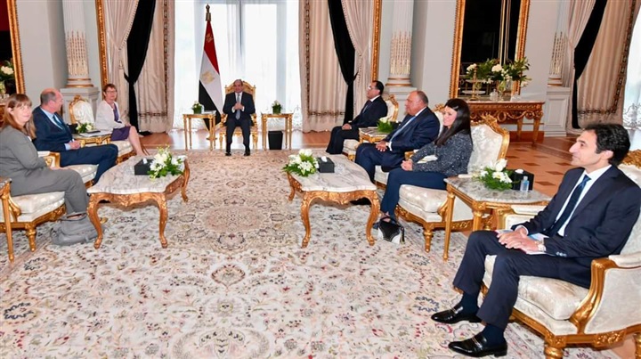 استقبل السيد الرئيس عبد الفتاح السيسي، اليوم، السيدة أوديل رينو باسو، رئيس البنك الأوروبي لإعادة الإعمار والتنمية، وذلك بحضور الدكتور مصطفى مدبولي، رئيس مجلس الوزراء، والسيد سامح شكري، وزير الخارجية، والدكتورة رانيا المشاط، وزيرة التعاون الدولي.