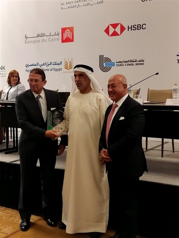 وفي هذا الصدد، قام جمال الغرير، رئيس مجلس إدارة القناة للسكر، بتقديم درع التكريم إلى محمد بدير.