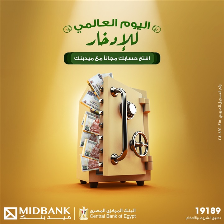 . أعلن ميدبنك MIDBANK، إنه احتفالا باليوم العالمي للادخار، يمكن فتح “حساب الكل” مجانًا وبدون حد أدنى، وذلك من 15 أكتوبر 2022 وحتى 31 أكتوبر 2022.