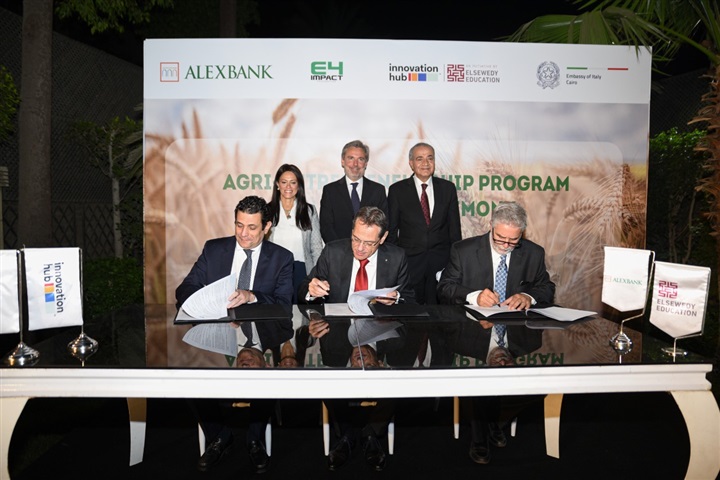 تحت رعاية السفير الإيطالي في مصر، وقّع بنك الإسكندرية -أحد بنوك مجموعة انتيسا سان باولو، والسويدى اديوكيشن، ومؤسسة E4Impact الإيطالية- مذكرة تفاهم لتنفيذ برنامج ريادة الأعمال الزراعية وتطويره.
