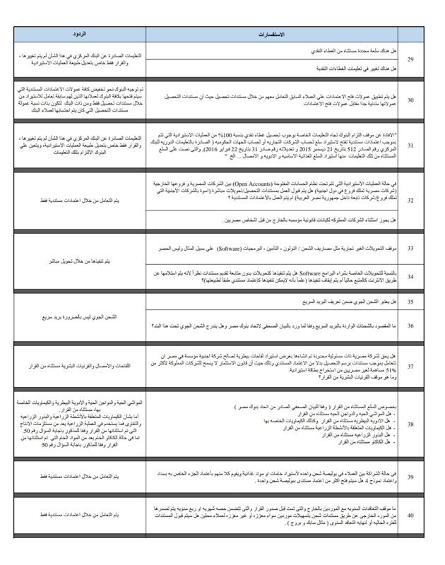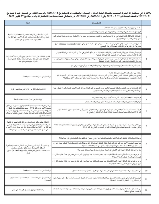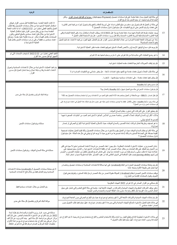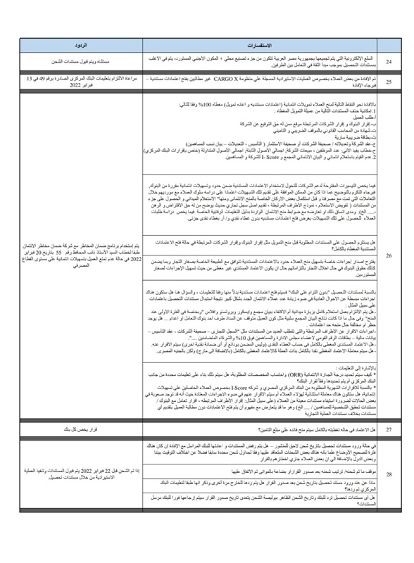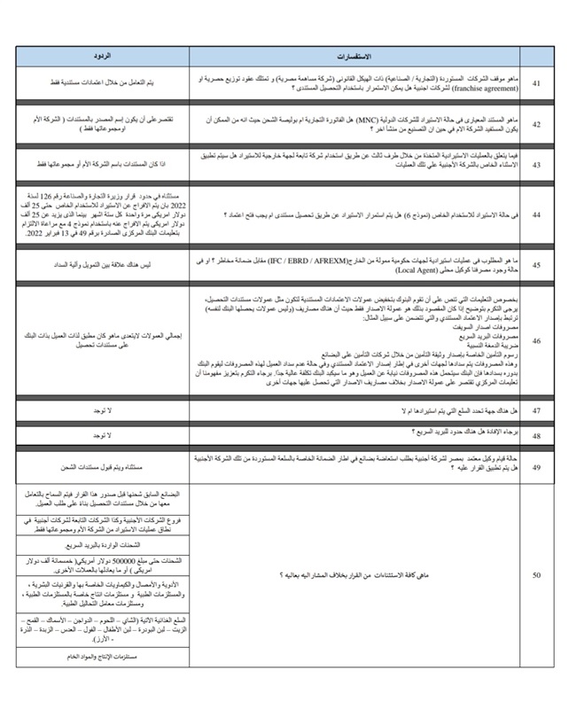 وجاءت استفسارات البنوك الجديدة بخصوص الاعتمادات المستندية كالتالي: