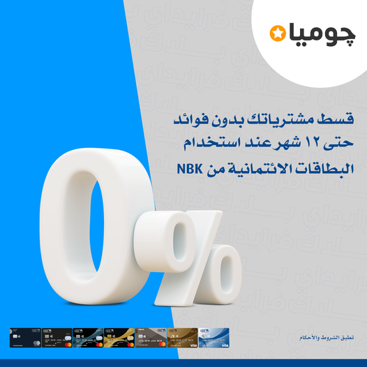 . أعلن بنك الكويت الوطني- مصر، لعملائه عن إمكانية تقسيط المشتريات حتى 12 شهرا بدون فوائد من موقع ” جوميا – jumia.com.eg ” وذلك عند الدفع باستخدام بطاقات بنك الكويت الوطني الائتمانية.