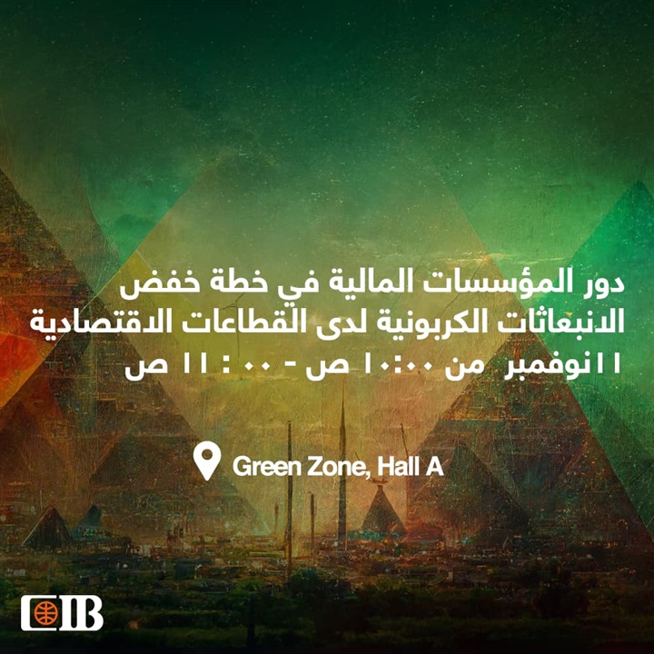 دور المؤسسات المالية في خطة خفض الانبعاثات الكربونية لدى القطاعات الاقتصادية 11 نوفمبر من 10 صباحا وحتى 11 صباحا.
