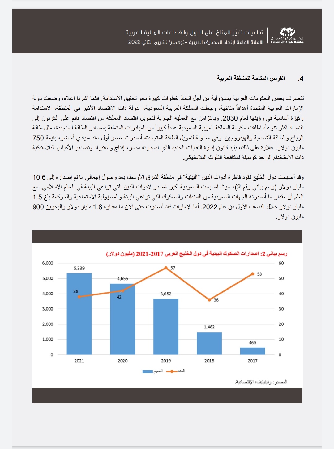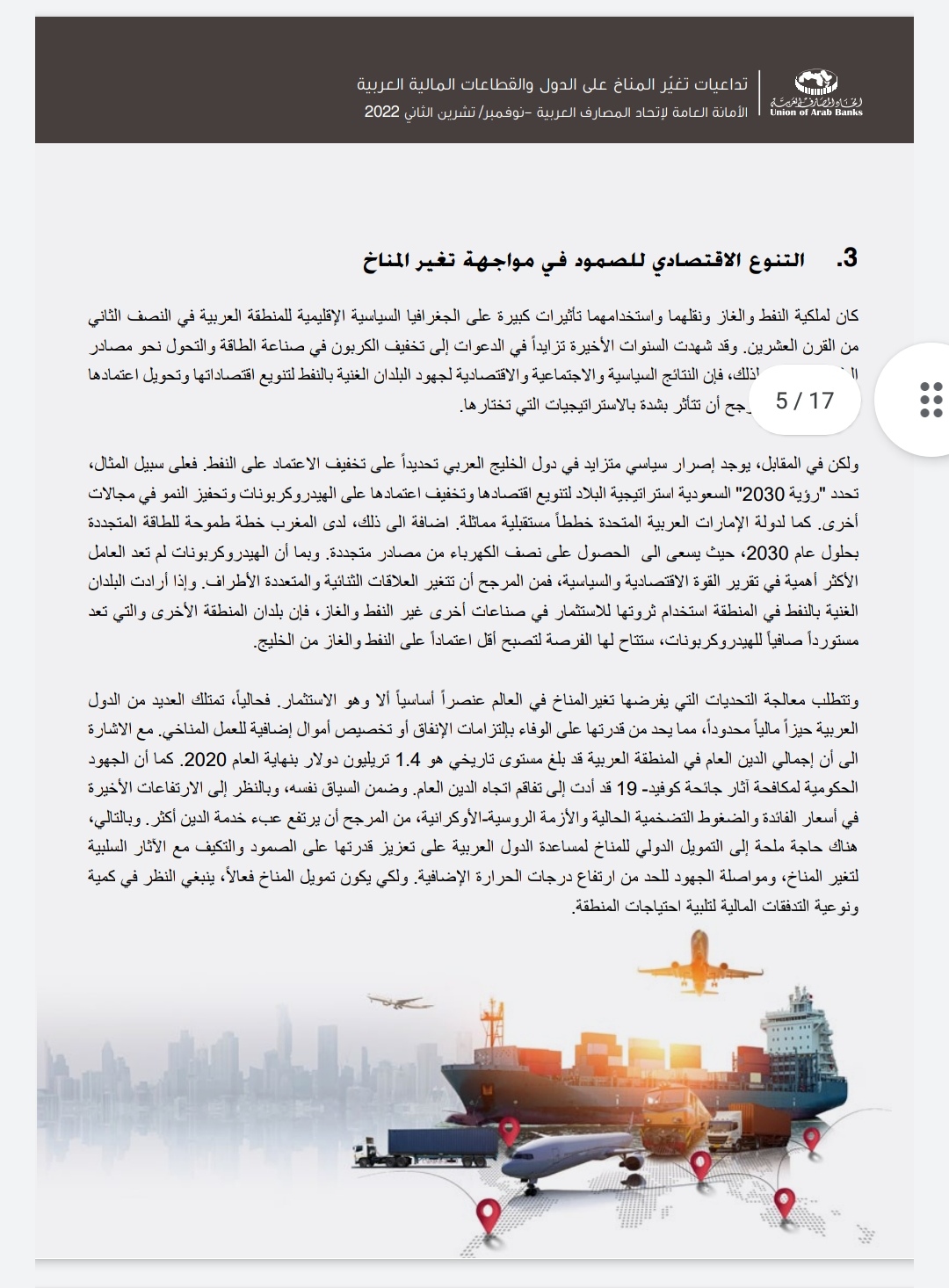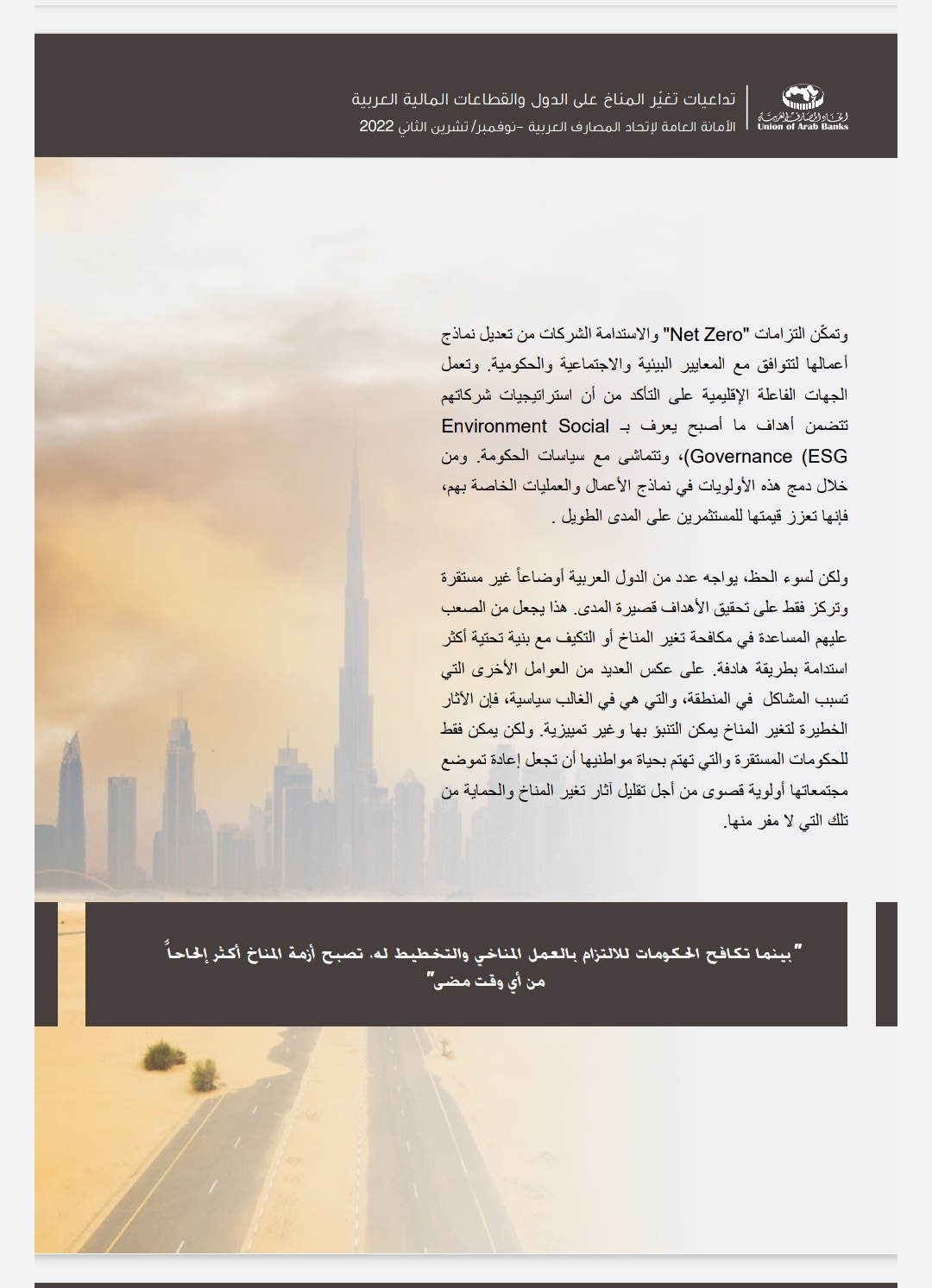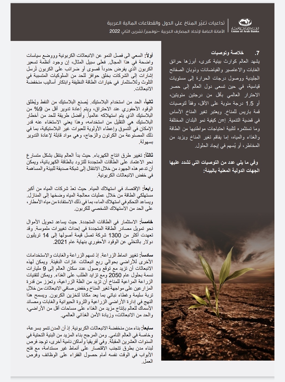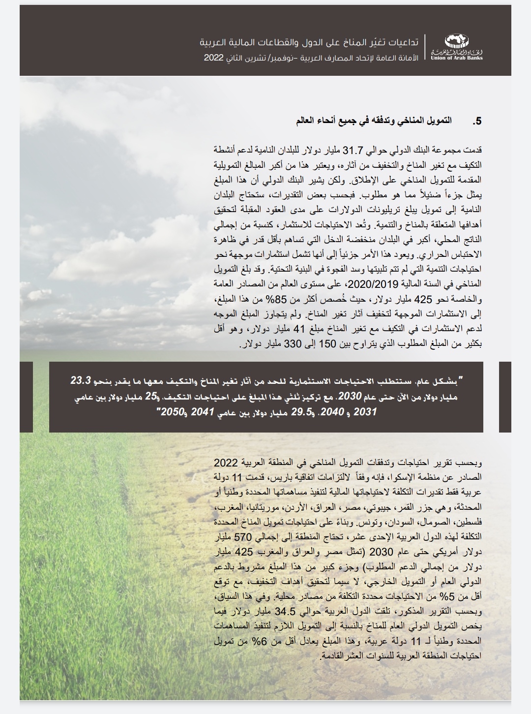 وتأتي هذه الدراسة بالتزامن مع مشاركة محمد الأتربي، رئيس مجلس إدارة اتحاد المصارف العربية، ورئيس مجلس إدارة بنك مصر، في قمّة الأمم المتحدة للمناخ COP27 الذي استضافته مصر في مدينة شرم الشيخ خلال الفترة من 6 إلى 18 نوفمبر 2022.