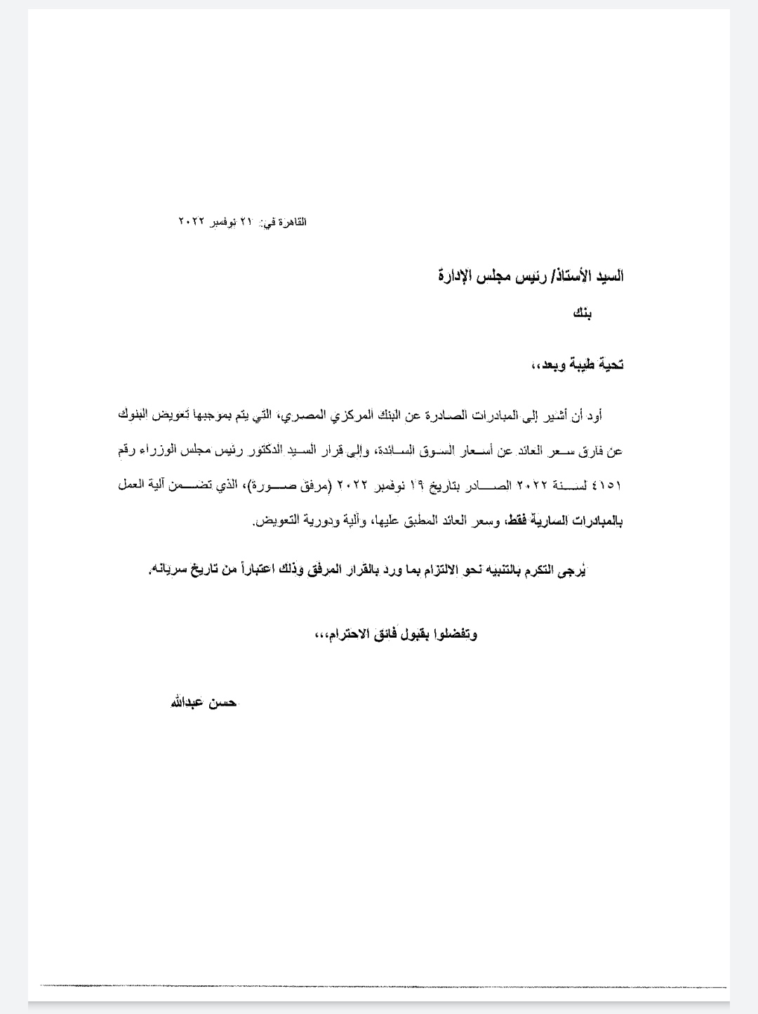 خاطب البنك المركزي المصري البنوك العاملة في السوق المصري لتنفيذ قرارات رئيس الوزراء بشأن تكاليف مبادرات التمويل ذات الفائدة المنخفضة.