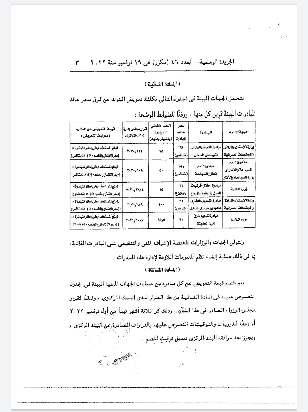 بحسب القرار رقم 4151 لسنة 2022 الذي نشرته الجريدة الرسمية، فإن وزارة الإسكان تتحمل تكلفة مبادرتي التمويل العقاري بقيمة 15 مليار جنيه.