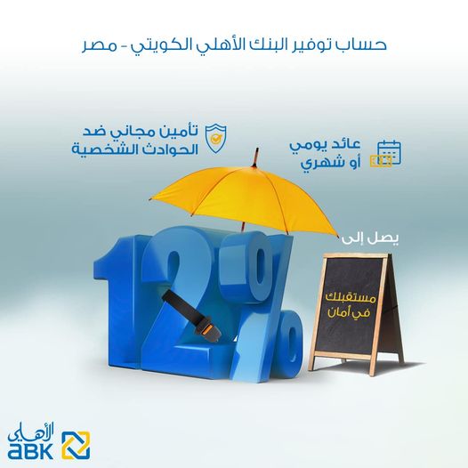 أعلن البنك الأهلي الكويتي- مصر، لعملائه، عن إمكانية الحصول على عائد يصل إلى 12% سنوياً، وبدورية صرف متنوعة يومياً وشهرياً.