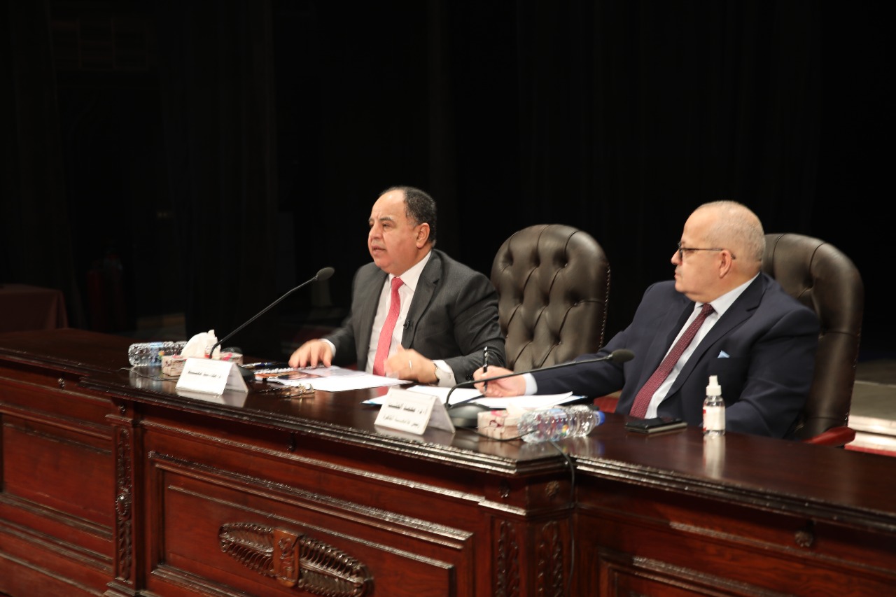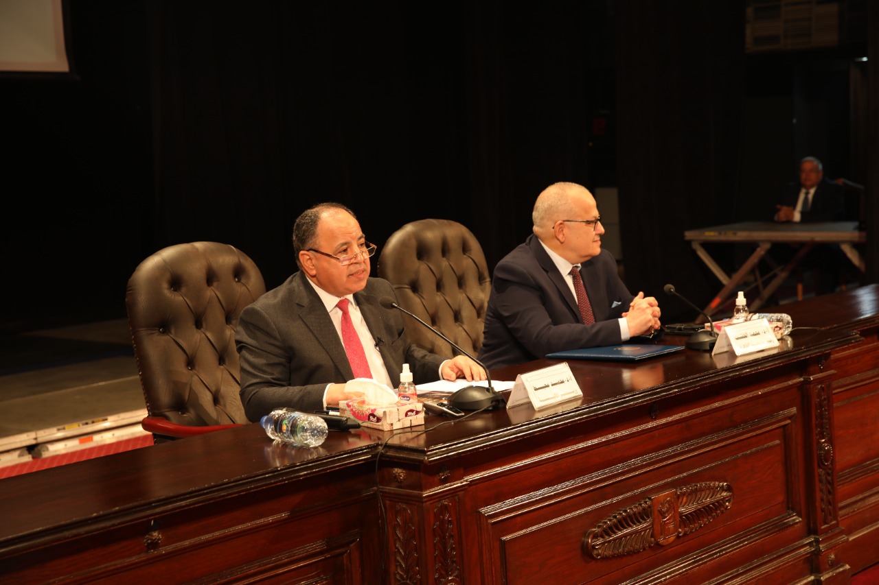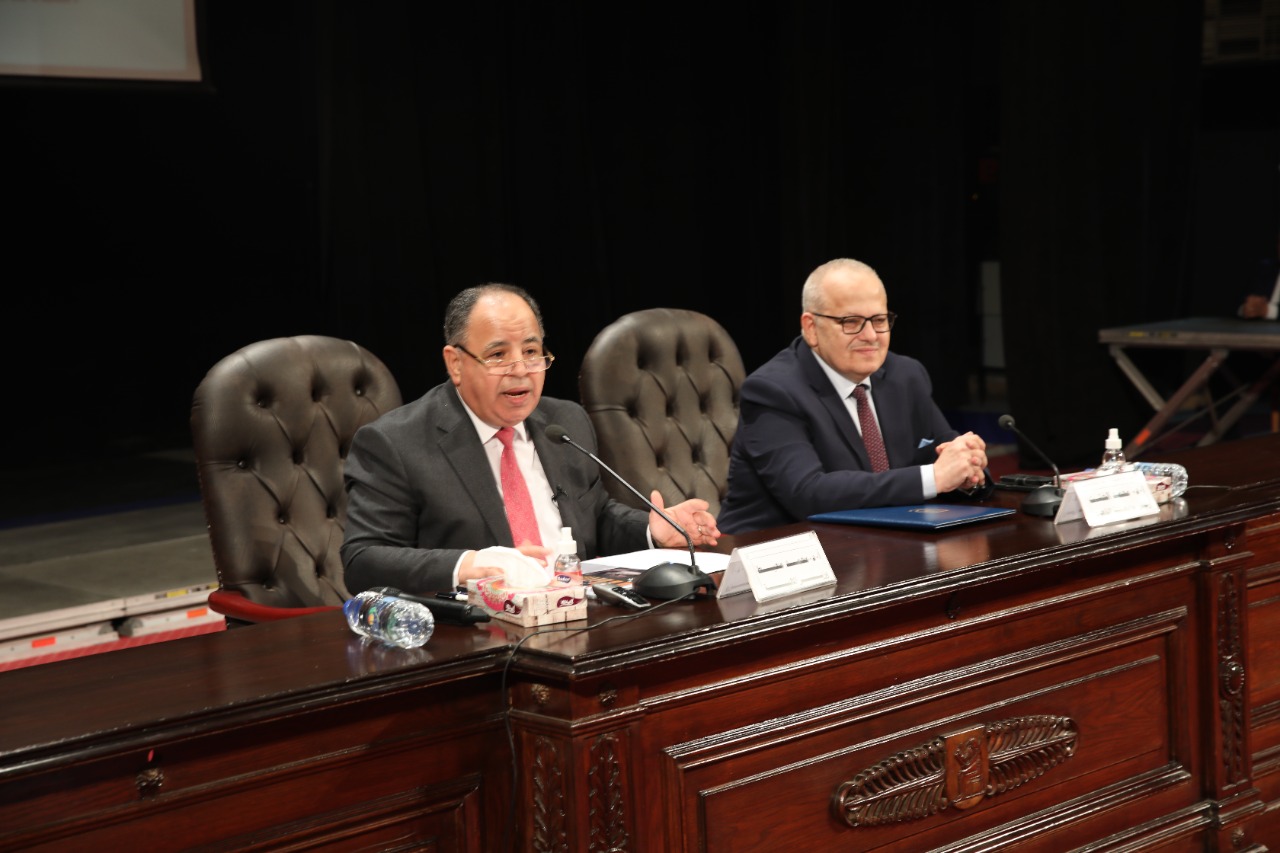 وزير المالية.. لطلاب وأساتذة وعمداء كليات جامعة القاهرة بحضور د. الخشت: