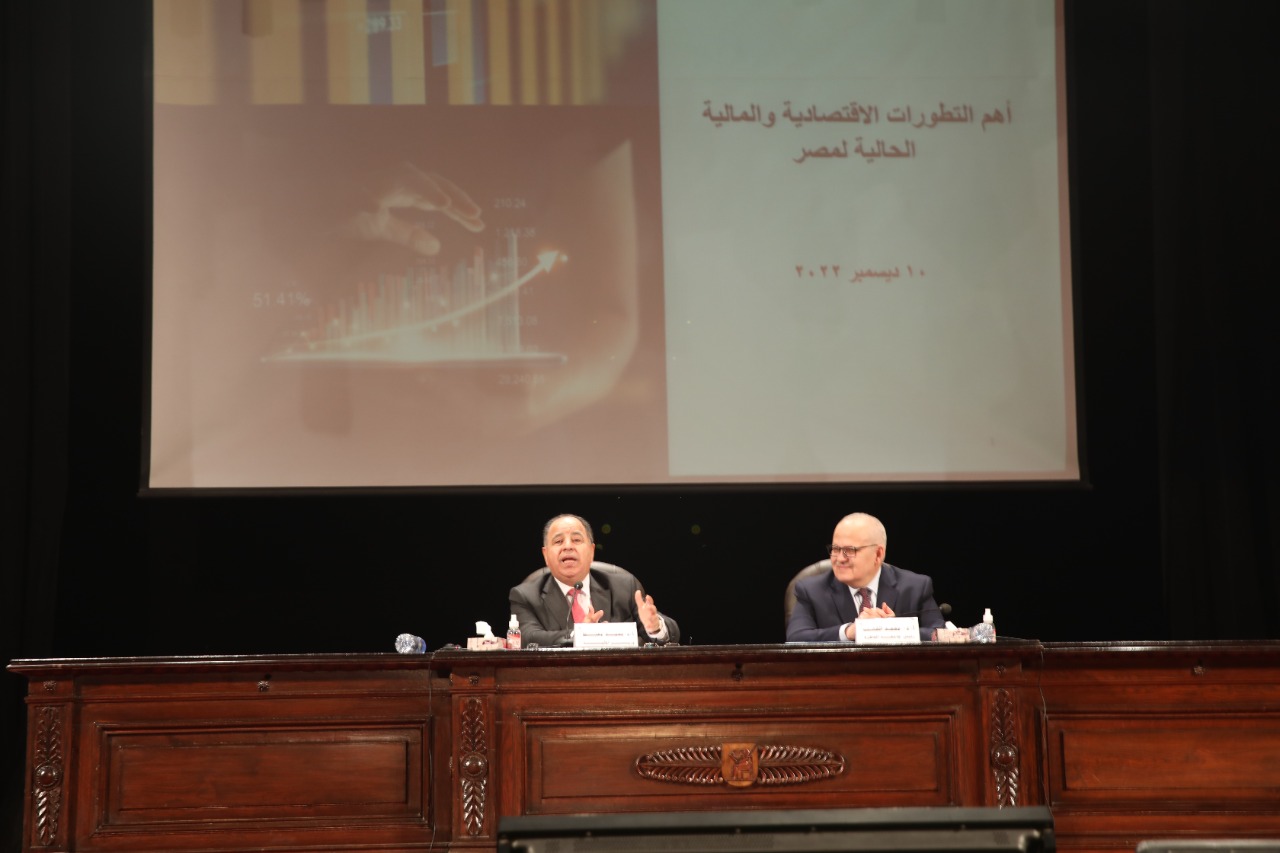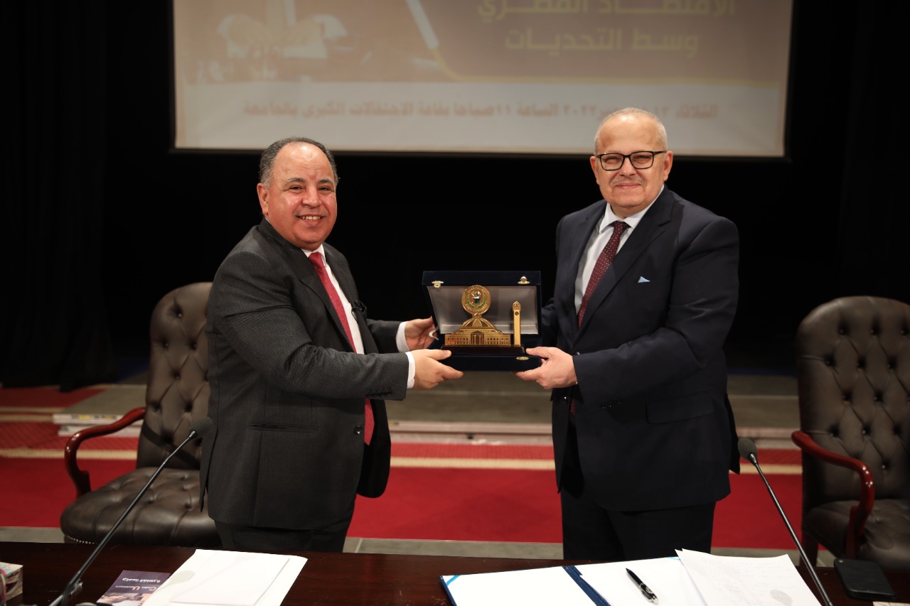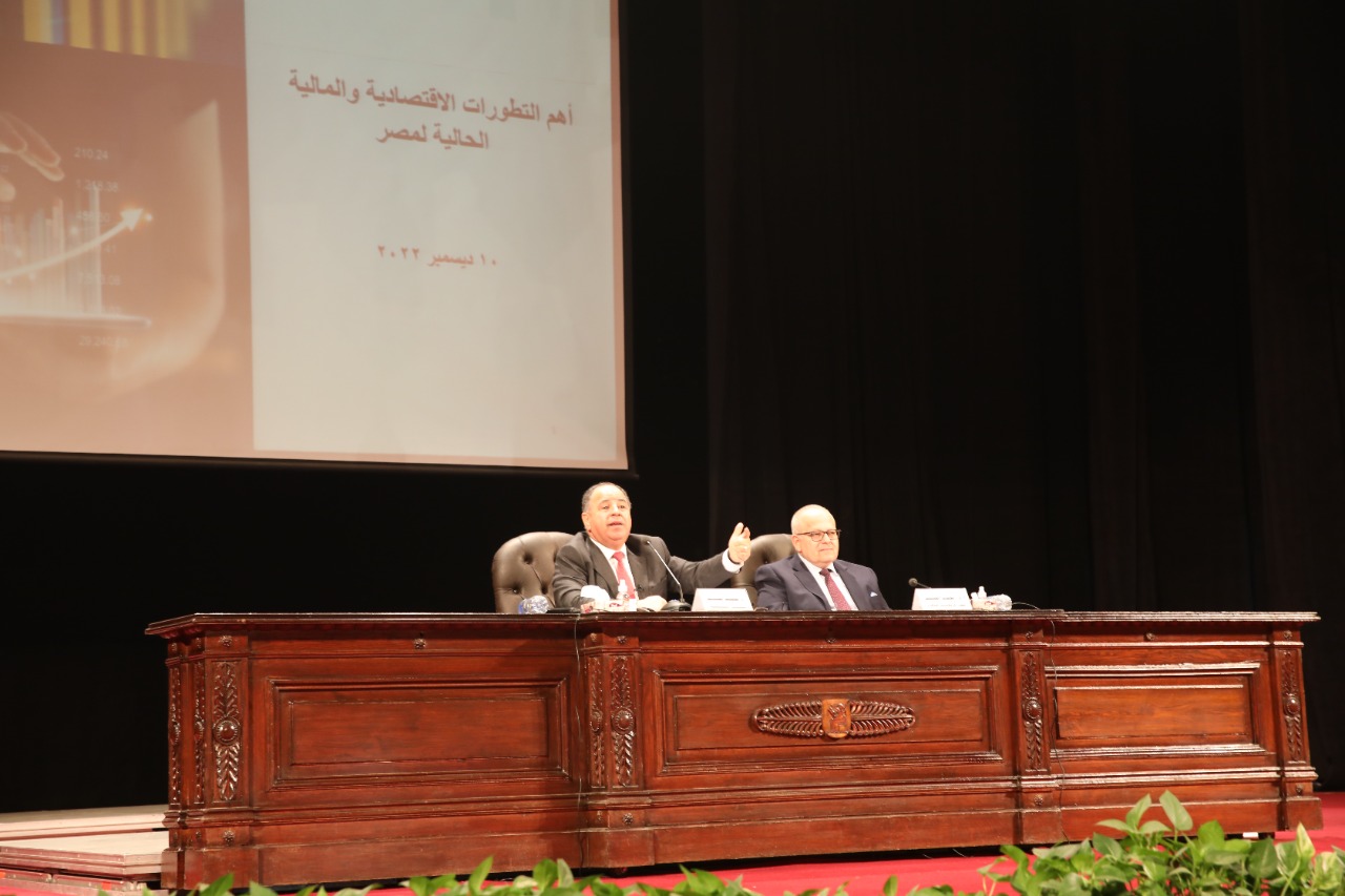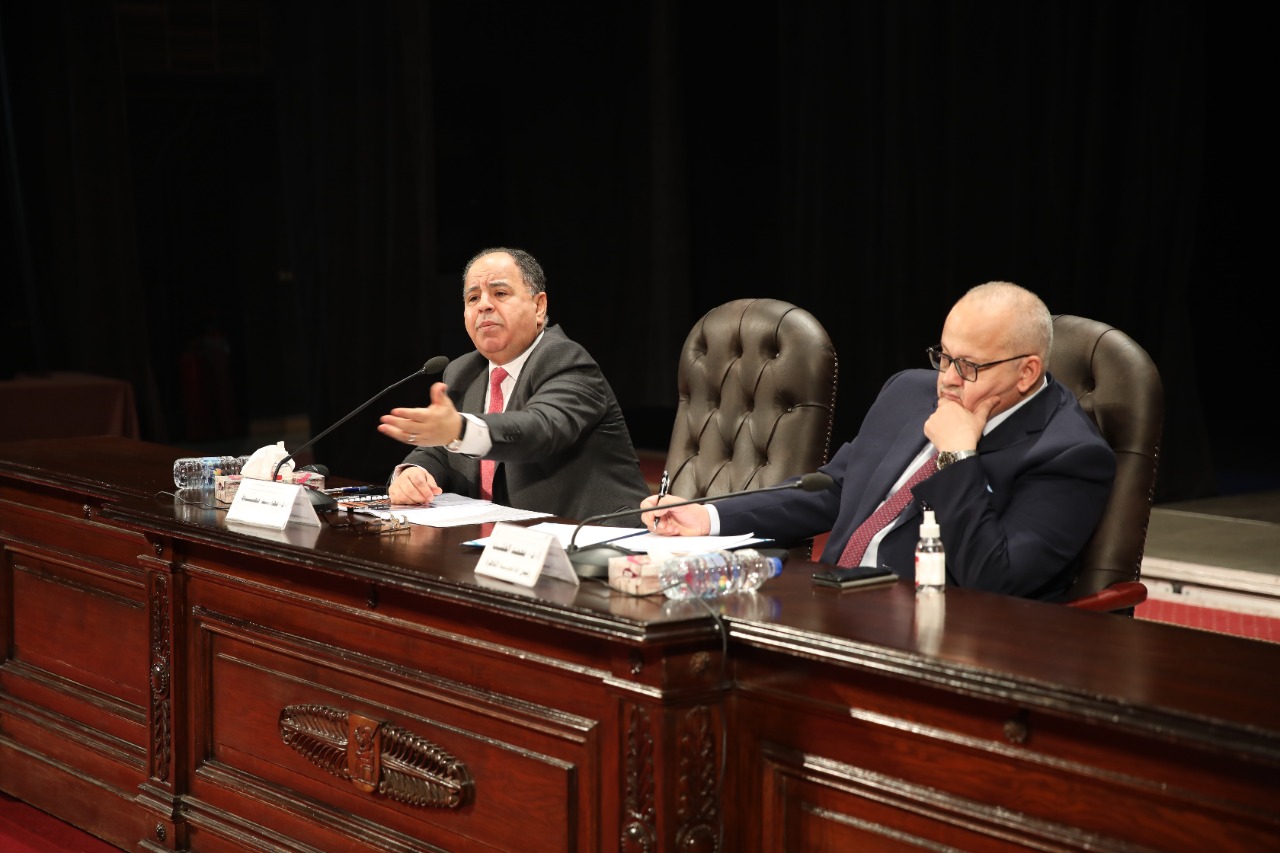 وزير المالية.. لطلاب وأساتذة وعمداء كليات جامعة القاهرة بحضور د. الخشت:
