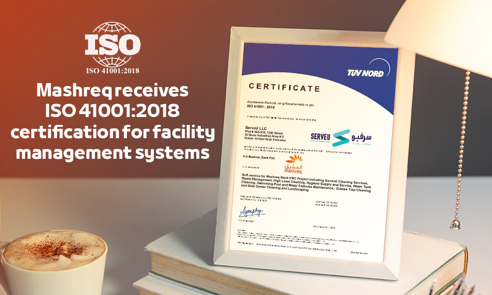 أعلن بنك المشرق، عن حصوله على شهادة الآيزو ISO 41001: 2018 من ServeU.