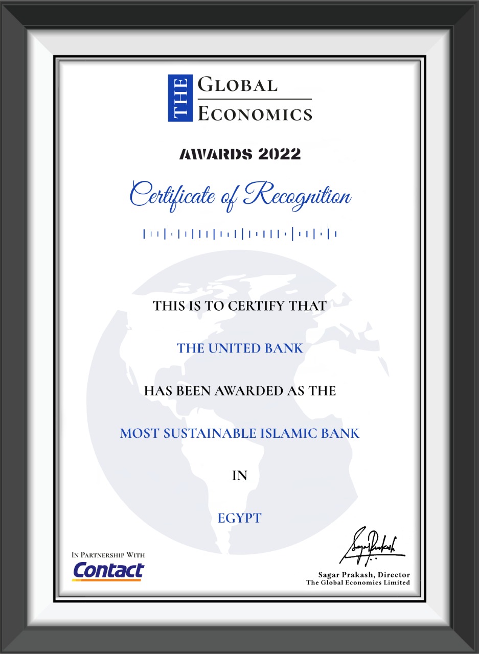 أعلنت مؤسسة جلوبال ايكونوميست البريطانية Global Economics حصول المصرف المتحد علي جائزة ” أكثر البنوك الأسلامية استدامة لعام” 2022 The Most Sustainable Islamic Bank.