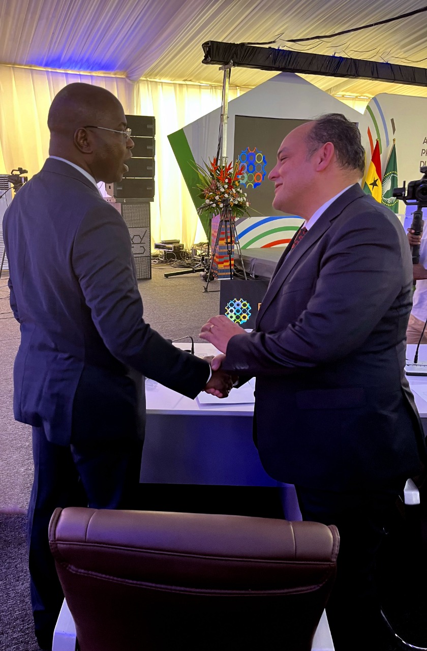 وأشار وزير التجارة إلى تقدير الحكومة المصرية للدور المحوري لدولة غانا في تفعيل اتفاقية التجارة الحرة القارية الأفريقية AFCFTA واستضافة مقرها الرئيسي، لافتاً إلى أن توقيع أول صفقة تجارية بين مصر وغانا في إطار الاتفاقية يعكس العلاقات المتميزة التي تربط البلدين والفرص الكبيرة أمام الصادرات المصرية بالسوق الغاني.