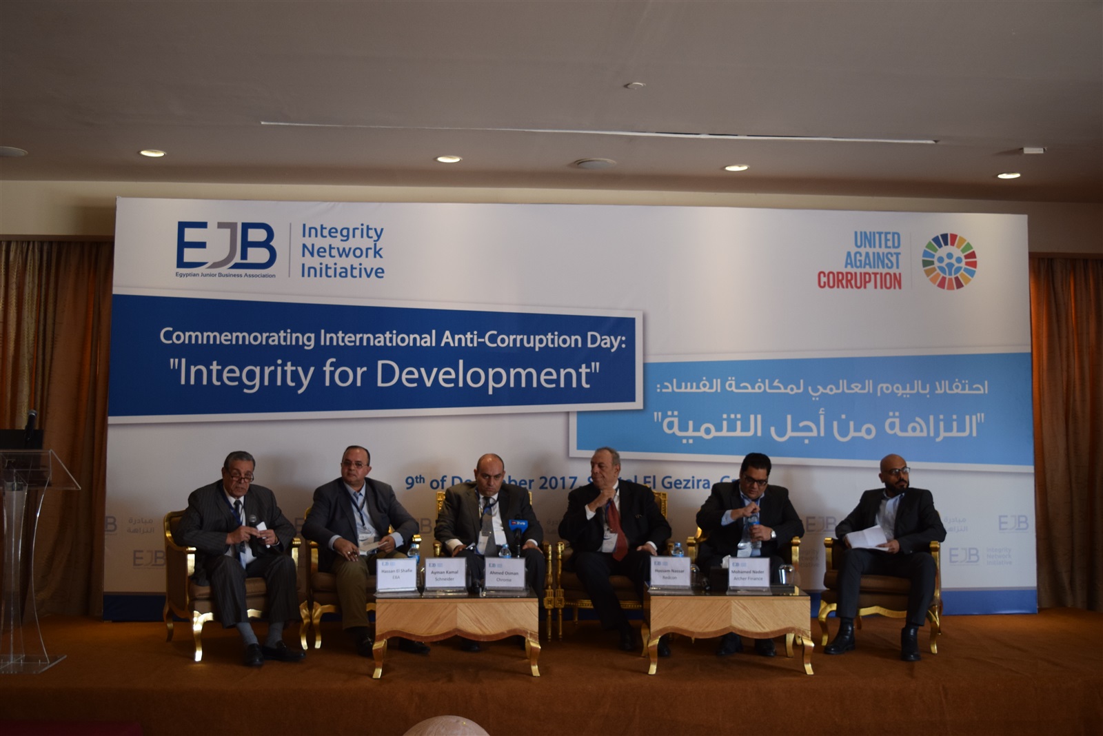 وقال قصي سلامة، مدير مشروع مبادرة النزاهة فى الأعمال:” نجتمع اليوم للاحتفال باليوم العالمى للفساد الموافق 9 ديسمبر وهو نفس اليوم الذى وقعت فيه مصر على الميثاق العالمى للنزاهة وأيضًا للإعلان عن إنضام اعضاء جدد لمبادرة النزاهة”