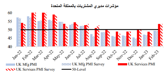 وبالنسبة للمملكة المتحدة، فقد تحسن نشاط قطاع التصنيع بشكل طفيف وجاء أفضل من التوقعات في شهر فبراير. وارتفع قطاع الخدمات كما كان متوقع، ليصل إلى أعلى مستوى له منذ شهر يونيو. وأشارت وكالة ستاندرد آند بورز إلى تأثير انتعاش النشاط التجاري على توقعات حجم رفع سعر الفائدة.