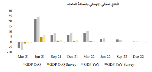 وبالانتقال إلى المملكة المتحدة، تجنب الاقتصاد ركودًا فنياً ولكن معدلات النمو أصبحت ساكنة، مما يؤكد احتمالية حدوث انكماش في الفصول الربع سنوية القادمة. وبقياس ربع سنوي، لم ينمو الناتج المحلي الإجمالي أو ينكمش في الربع الرابع، كما هو متوقع، ولكنه تحسن بالمقارنة بالانكماش الذي شوهد في الربع الثالث. وعلى أساس سنوي، شهد الناتج المحلي الإجمالي زيادة طفيفة في الربع الرابع، متماشياً مع التوقعات لكن أقل من معدل النمو في الربع الثالث.