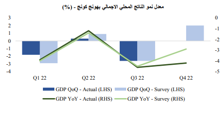 وعلى صعيد النمو الاقتصادي، أشارت البيانات الصادرة في مطلع الشهر إلى تراجع الناتج المحلي الإجمالي لعام 2022 بهونغ كونغ بشكل غير متوقع، ليسجل بذلك أكبر انكماش قياسي له منذ 1998، مما يسلط الضوء على تأثير فرض عمليات الإغلاق في الصين لمكافحة فيروس كورونا، وعلى الصعوبة التي قد تواجهها الصين في مسار تعافي نموها الاقتصادي حتى الوصول إلى المعدل المُستهدف والبالغ 5%.
