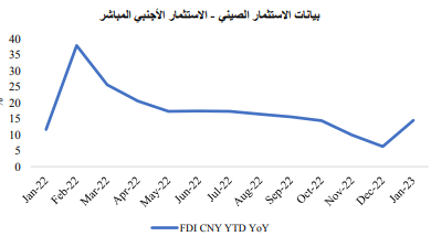 وجاءت البيانات الصادرة حول الاستثمار الأجنبي متباينة بشكل طفيف، فمن ناحية، سجلت الاستثمارات الأجنبية المباشرة انتعاشًا قويًا، وذلك مع تزايد الآمال بإعادة فتح الصين لاقتصادها.