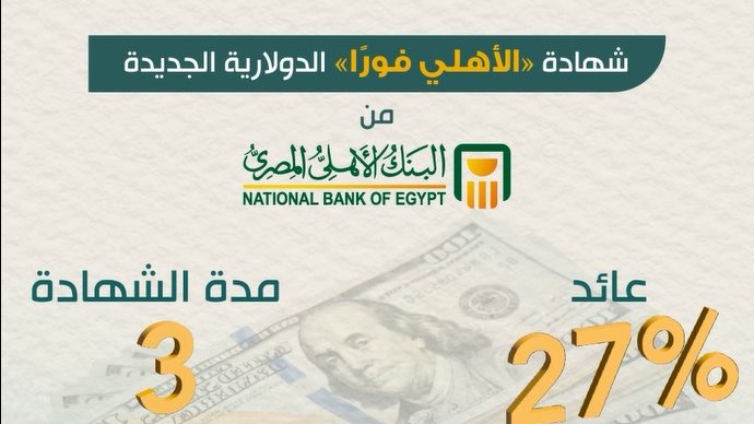 فيديو بعائد 27% مقدما.. تفاصيل شهادة “الأهلي فوراً” الدولارية الجديدة من البنك الأهلي المصري بواسطة بنوك مصر 27 يوليو، 2023 كتب بنوك مصر 27 يوليو، 2023 النشر 0FacebookTwitterPinterestLinkedinWhatsappTelegramCopy LinkEmail 775FacebookTwitterPinterestLinkedinWhatsappTelegramCopy LinkEmail النشر 0 FacebookTwitterPinterestLinkedinWhatsappTelegramCopy LinkEmail شهادة «الأهلي بلس» الدولارية الجديدة من البنك الأهلي المصري تفاصيل شهادة إيليت الدولارية الجديدة من بنك مصر بعائد 7%